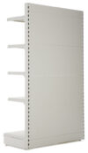 Each 2.1m high end promo shelving unit can be configured to suit your requirements. With a 300mm base shelf fitting 5 cans of baked beans and the 300mm upper shelves fitting around 4 cans of baked beans deep there is plenty of room for your promotions, special offers or seasonal goods. With 4 widths available these look fantastic and will fit flush against your gondola units.