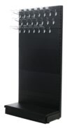 Each 1.8m wall peg board unit can be configured to suit your requirements. With a 370mm base shelf for extra stock items and the option of adding shelves when your peg board is not in use there is plenty of room for your promotions, special offers or seasonal goods. With 4 varying widths our gondola peg board bays can be connected together to create a seamless look and allow you to fit out your store in the most efficient way possible. Take the time to consider what you will be using your peg board for. Consider how much and what you will be hanging from your hooks? How many hooks do you need and will you need euro or single prong? Also take the time to think about the size of hook you will need for your stock levels, they come from as small as 100mm to around 250mm long. Why not consider taking a look at our shelf packs to give you the option of not having to use the peg board display or an end promo bay to give you even more retail space. Of course we are always here to assist you; you can call into our showroom and see wall and gondola units of varying sizes set up. This can give you a real sense of what your store will look like and allow you to visualise just how much stock you can fit onto each size shelf. We offer a design and planning service so you can get experienced advice from our Shelving4shops team. Having such experienced staff on hand is just one of the reasons our customers come back to Shelving4shops time and again. If you would like to talk over any aspect of your shop design, accessories or retail shelving please contact us and our team will be happy to help.
