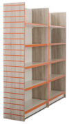 Gondola end panels can be the perfect way to finish off your shelving. Gondola slat wall panels provide the perfect place to hang promotional material giving extra display space for smaller items, a range of slat wall hooks are available to fit this board. They are also available in plain panels often used in smaller stores where the chance of knocking of hanging items due to the narrow isle space is a risk.