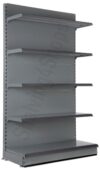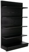 Each 1.8m wall shelving unit can be configured to suit your requirements. The 300mm base shelf is around 4 baked beans cans deep and the 250mm shelves above it fitting around 3 baked bean cans deep, you will have plenty of room for stock. All of our wall shelving bays can be connected together to create a seamless look and allow you to fit out your store in the most efficient way possible.