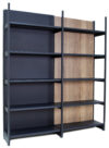 Price shown for one 665mm bay at 2.1m High with 5 x 300mm shelves. Also available in 800mm, 1000mm and 1250mm and with 370mm shelves. Wood colour available in either Walnut or Rustic Oak. Please use the drop down menu to select the correct size and colour required